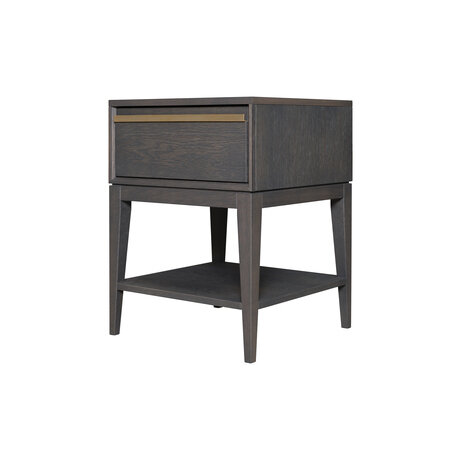 Тумбочка с двумя ящиками Emerson коричневого цветаЛюбовь Фото не соответствует действительности: цвет корпуса черный, ручка блестящая коричневая. Ножки выглядят более массивно по отношению к небольшому корпусу.